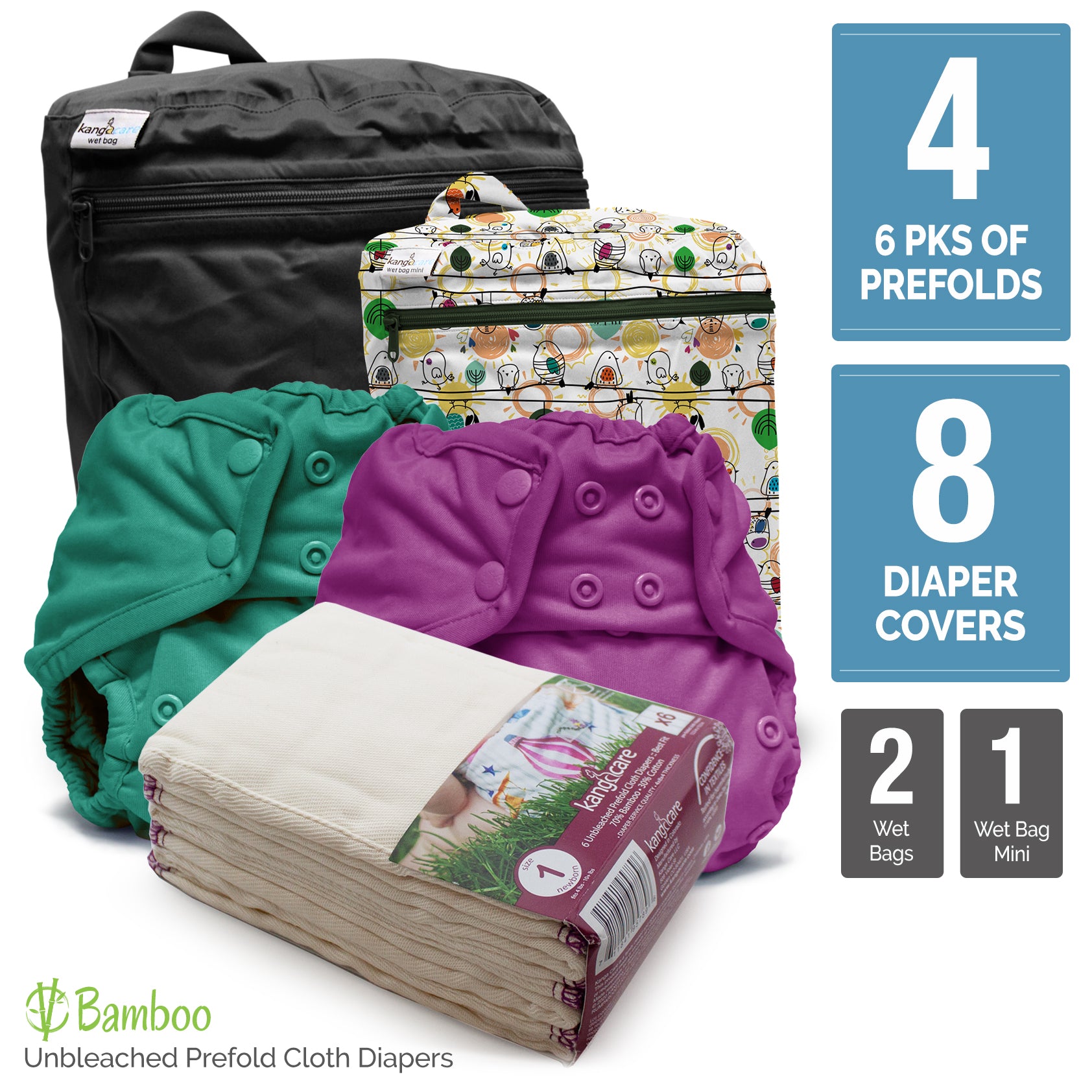 The Retro Standard - One Size Prefold Bundle comes with everything that you need to start cloth diapering. Buy in BULK and SAVE $$$ with Kanga Care Bundles! You choose any in-stock prints / colors to make up your perfect bundle! Congratulations on your decision to cloth diaper!Â