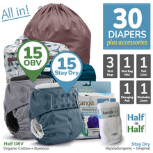Congratulations on your decision to cloth diaper! The All in Rumparooz Stay Dry Original & OBV Organic Half-N-Half Bundle comes with everything that you need to cloth diaper your child from birth to potty training. Buy in BULK and SAVE $$$ with Kanga Care Bundles! You choose any in-stock prints / colors to make up your perfect bundle!