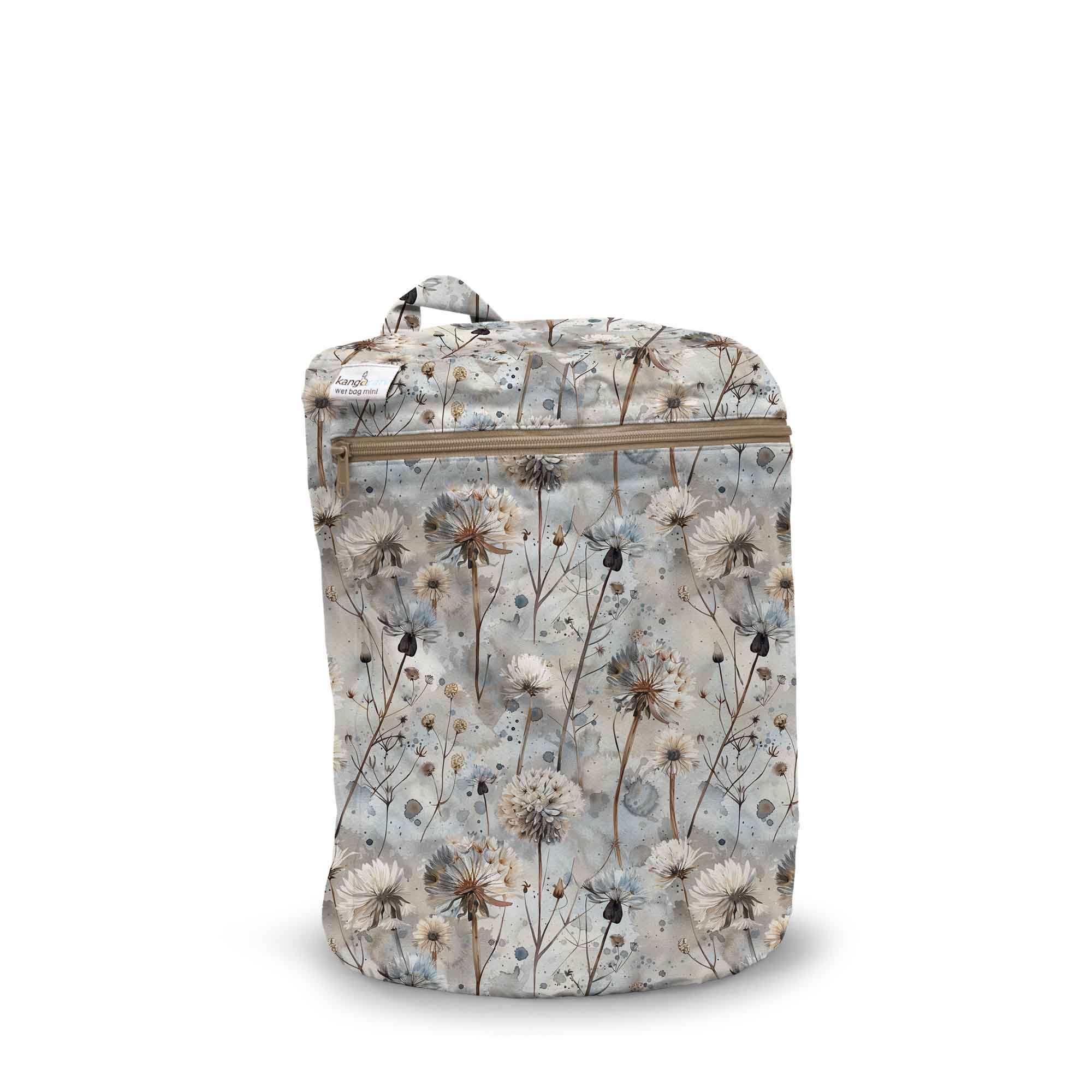 The Kanga Care Wet Bag Mini is exactly half the size of the standard size Kanga Care Wet Bag. It holds 8-10 diapers and inserts thanks to its unique half-moon shape. The matching zipper is easy to grab, and the 3D design and front zipper make it a lid-like top. Plus, the handy strap and industrial strength snap make it perfect for attaching to strollers, doorknobs, or any other convenient spot.