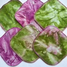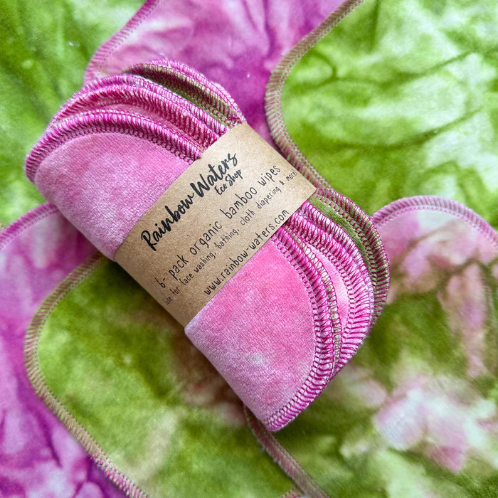 These super soft wipes are made with natural unbleached organic bamboo/cotton blend. One side is plushy organic cotton fleece and the other is smooth organic cotton velour. The Marble Dying process is done in house, and each pack of 6 is a grab bag of colors.