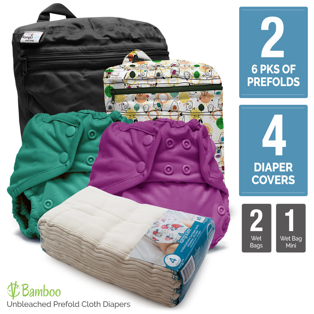 Bamboo Retro Starter - One Size Prefold Cloth Diaper Bundle - Size 4