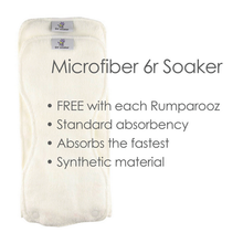 In this bundle you get 12 individual inserts (6 one-size, 6 newborn), for a total of 6 sets of our gold standard 6r Soaker insert. The 6pack bundle is another great bundle for both replacing old, worn out inserts as well as adding extra inserts to a new, fresh stash to multiply your absorbency combos! Each microfiber layer, as soft as a cloud, quickly absorbs with a thirsty 350 GSM quality. Each set, featuring seven layers, provides a total of 2,450 GSM absorbency. The Rumparooz 6R Soaker, specifically designed for the Rumparooz One Size Cloth Pocket Diaper, offers extensive size and absorbency adjustments. Its versatility makes it an ideal replacement for any old insert and suitable for use in any pocket diaper brand.