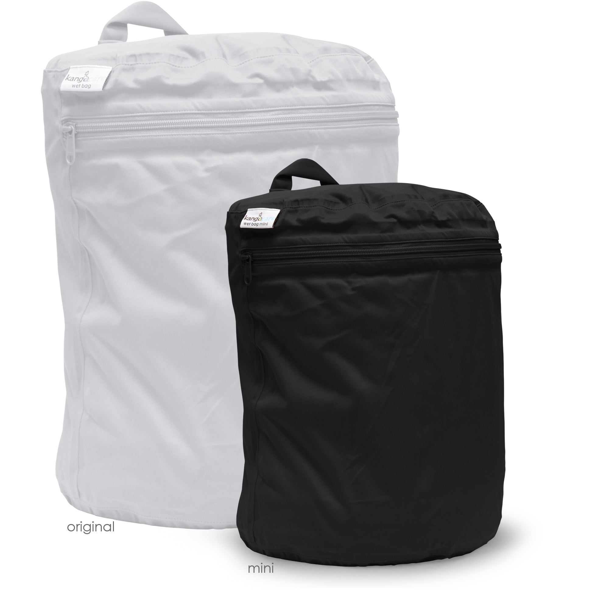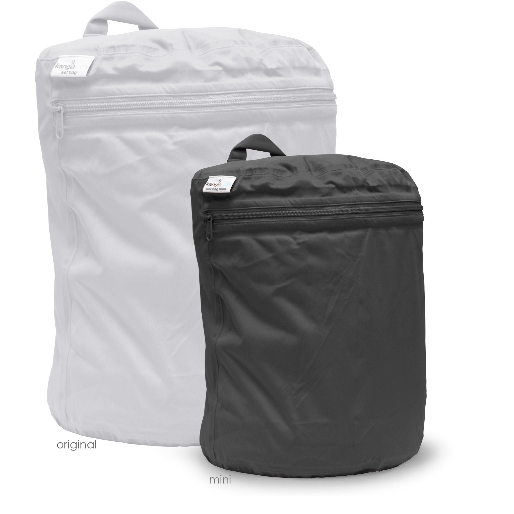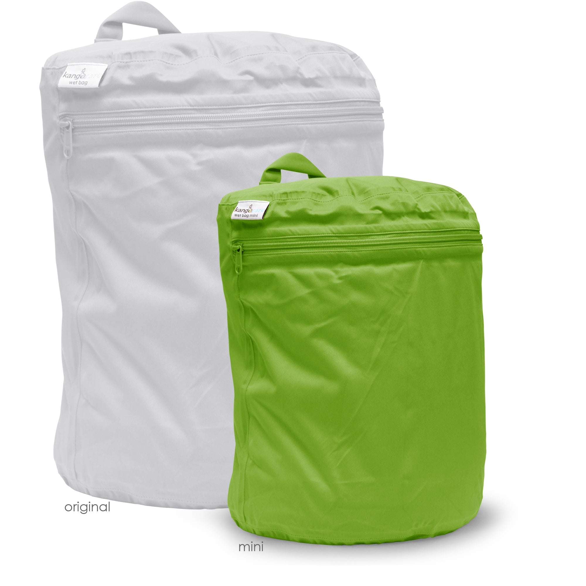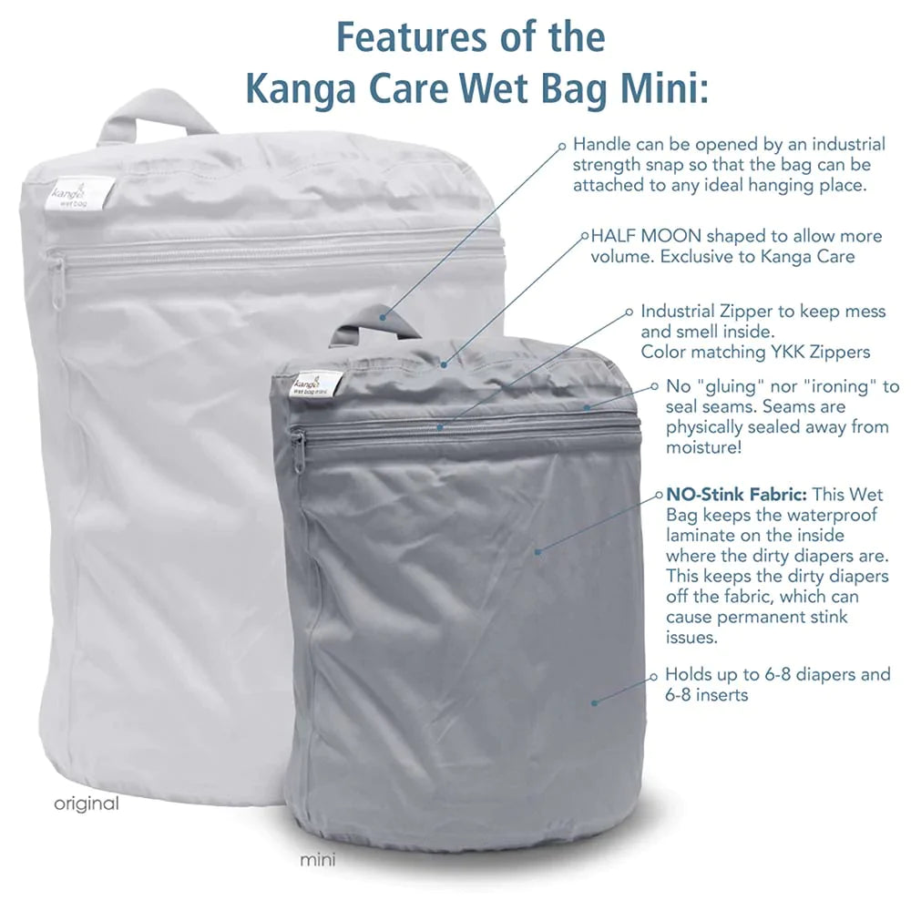 Kanga Care Wet Bags Minis area a half size replica of the viral favorite larger size. The Mini, identical in every aspect except dimensions, is exactly 50% smaller. The famous 3D shape (HALF MOON) is exclusive Kanga Care and holds around 7-9 soiled cloth diapers and inserts. Kanga Care Wet Bags have color coordinating, heavy duty YKK zippers that are easy to grab. The zipper is placed on the front of the bag creating a lid type function. There is a strap on top that can be opened by an industrial strength snap allowing the bag to be attached to the side of a changing table, stroller handle, door knob, or other ideal hanging place.