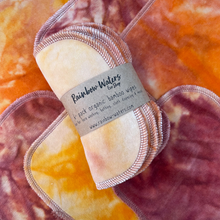 These super soft wipes are made with natural unbleached organic bamboo/cotton blend. One side is plushy organic cotton fleece and the other is smooth organic cotton velour. The Marble Dying process is done in house, and each pack of 6 is a grab bag of colors.