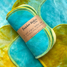 These super soft wipes are made with natural unbleached organic bamboo/cotton blend. One side is plushy organic cotton fleece and the other is smooth organic cotton velour. The Marble Dying process is done in house, and each pack of 6 is a grab bag of colors.