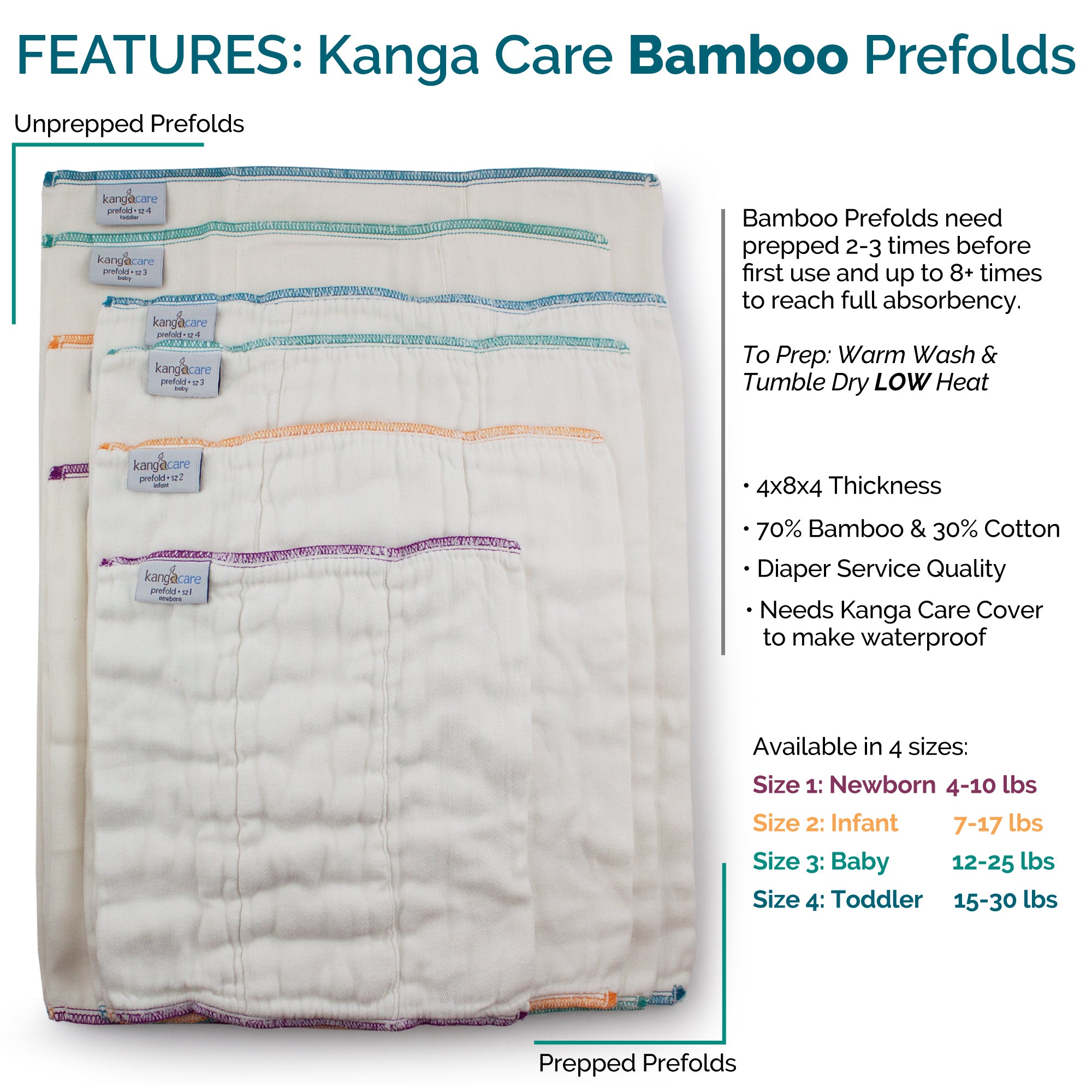 - 1 x 6 pack of prefolds (your choice of size 1, 2, 3, or 4)