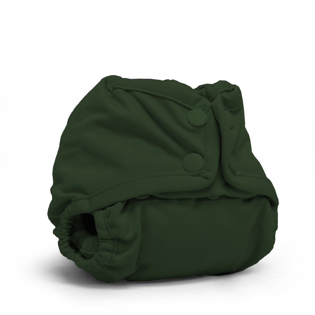 Here's Pine - The forest green Rumparooz introduced in 2019 as one of our main Newborn cloth diaper colors. The Rumparooz Newborn Cloth Diaper Cover is designed to grow with your baby with 3 adjustable rise settings that are designed to fit your preemie and newborn. Weight range of cover starts at 4 pounds and will fit up to approximately 15 pounds. Rumparooz Newborn Cloth Diaper Covers are generously sized and designed to fit over most newborn fitted or prefold diapers. Covers may be used multiple times before washing but should be placed into the laundry if it becomes soiled. Kanga Care uses a water resistant polyester TPU which is a solvent-free polyester fabric that has been laminated with a thermoplastic polyurethane using a heat bonding process, not chemicals. This process is low in toxicity and is better for the natural environment then traditional PUL.